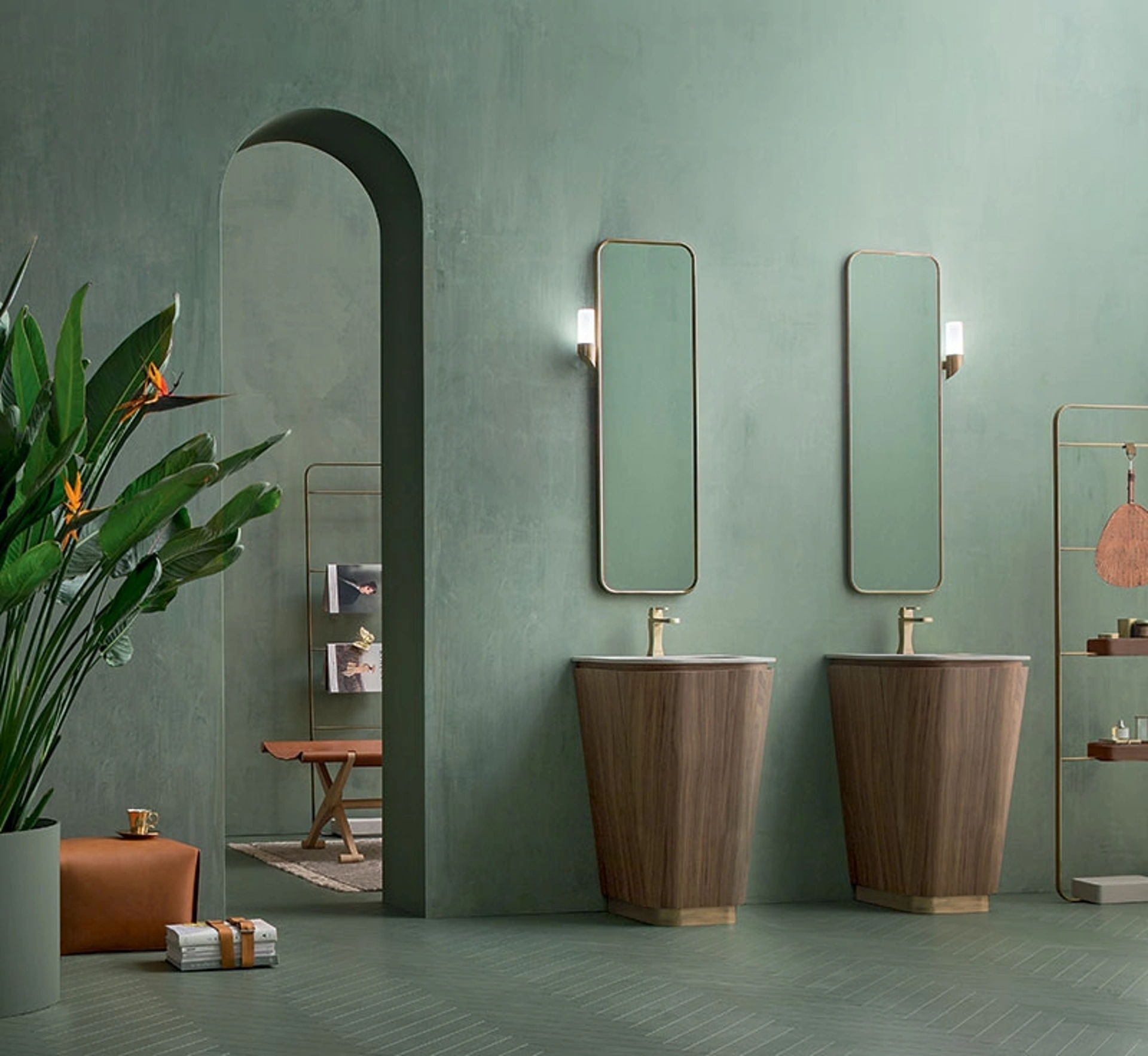 Arreda il tuo bagno design al meglio con Suede 01, mobili bagno a terra e accessori in legno di Cerasa.