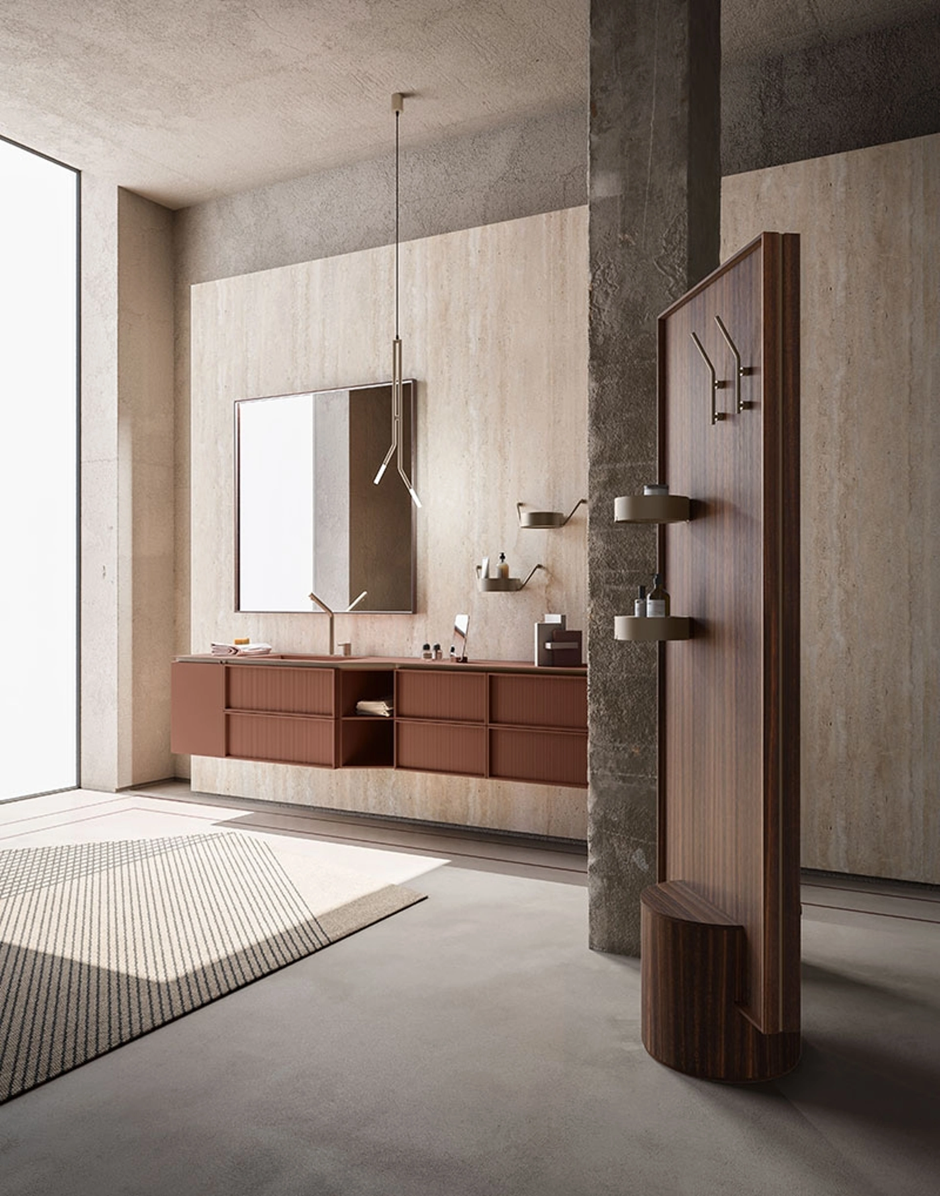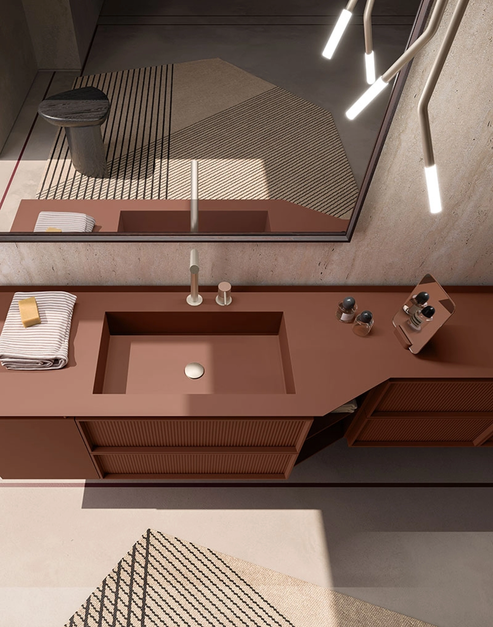 mobili bagno sospesi in laccato opaco del brand Cerasa: clicca e scopri l'arredo bagno design Des Evolution Sandstone 01 per la stanza del benessere.