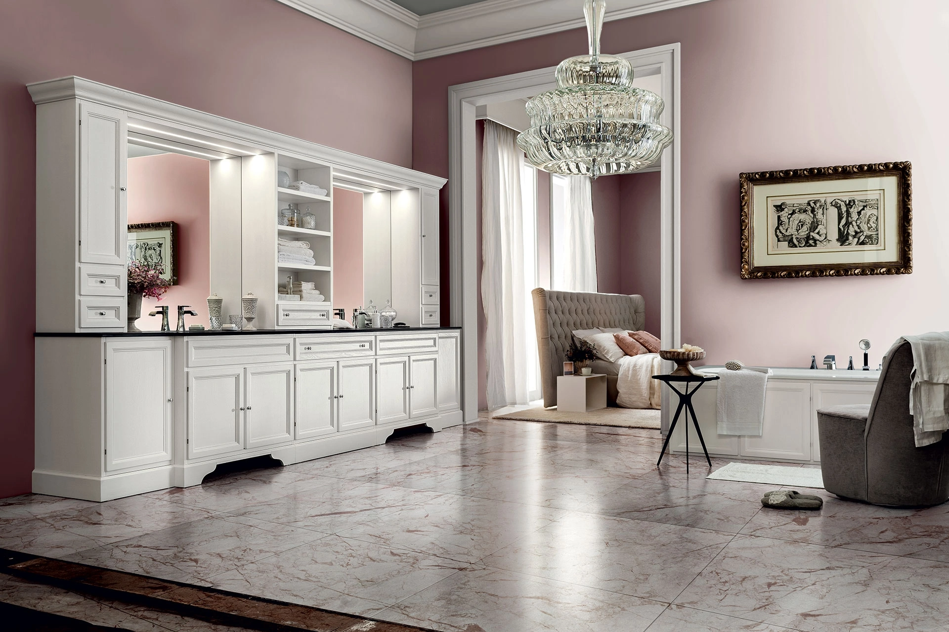 Arreda il tuo bagno classico al meglio con Paestum 00, mobili bagno a terra e accessori in laccato opaco di Cerasa.