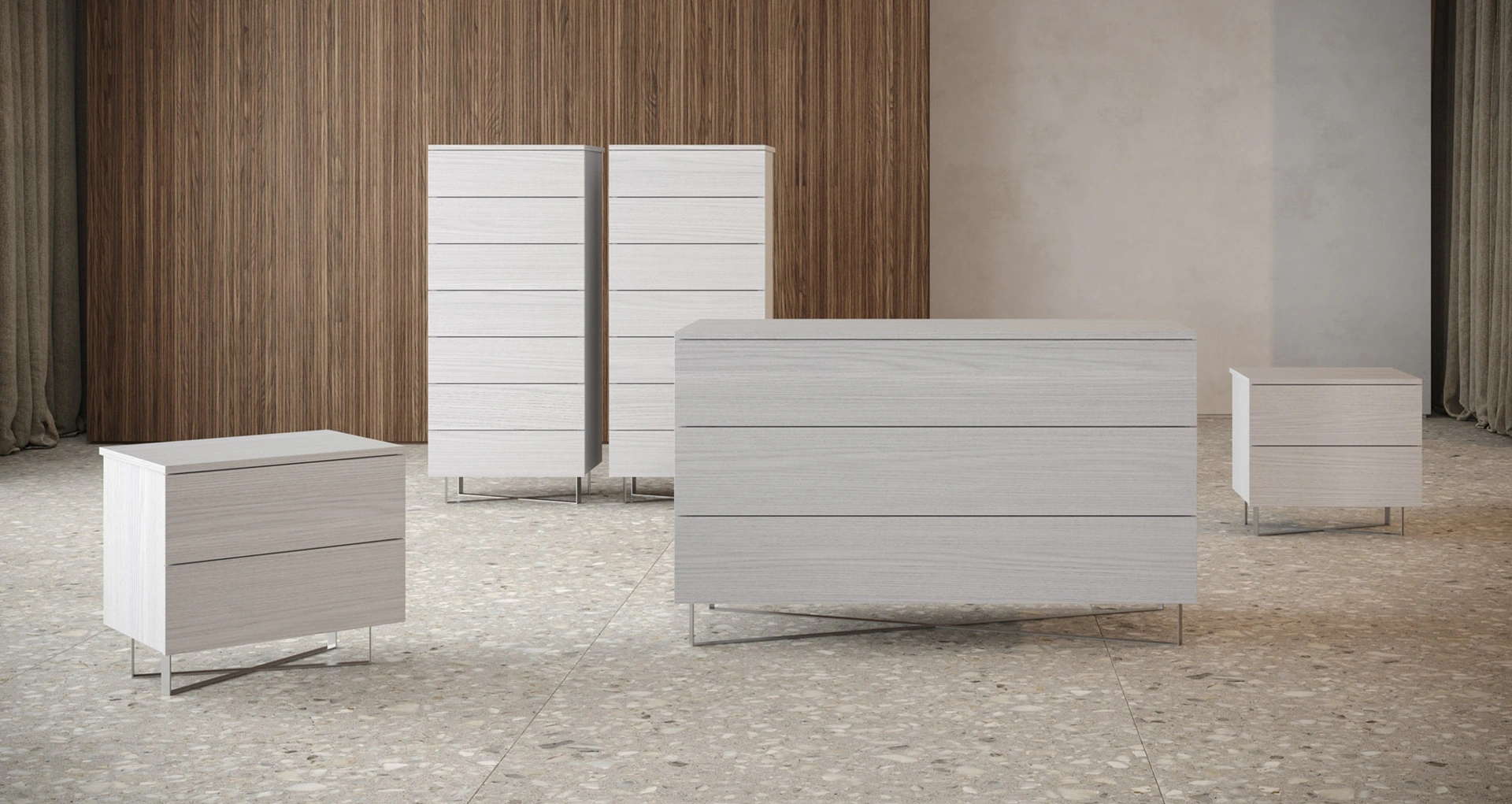 Una ricca gamma di mobili con cassetti Giessegi: i comodini moderni in melaminico, come Cairo Gruppo Notte, sono tra le soluzioni più belle.