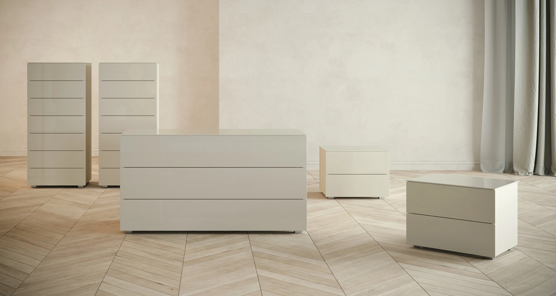Clicca e scopri di più sul comodino Glass Gruppo Notte: Comodini e cassettiere di Giessegi sono ideali per spazi moderni.