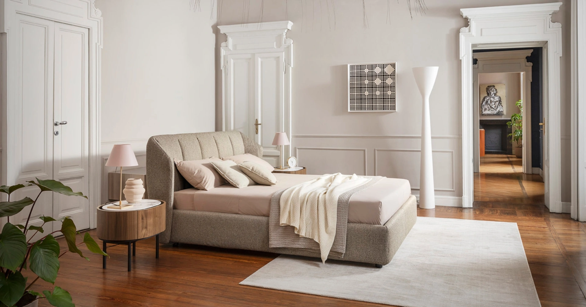 Il letto Jill in tessuto, tra i modelli con contenitore matrimoniali moderni di Calligaris, è perfetto per assicurarti il sonno più profondo.