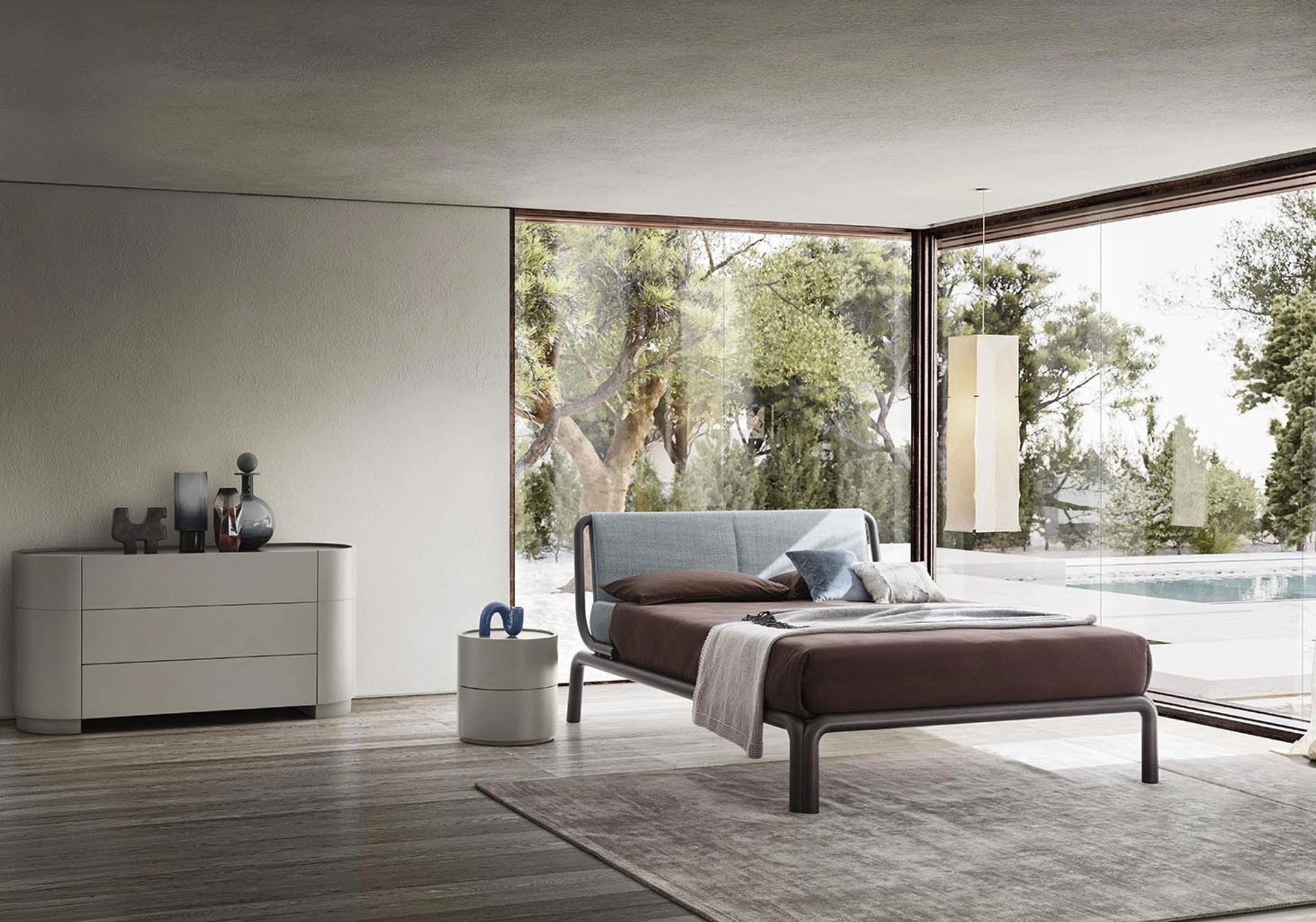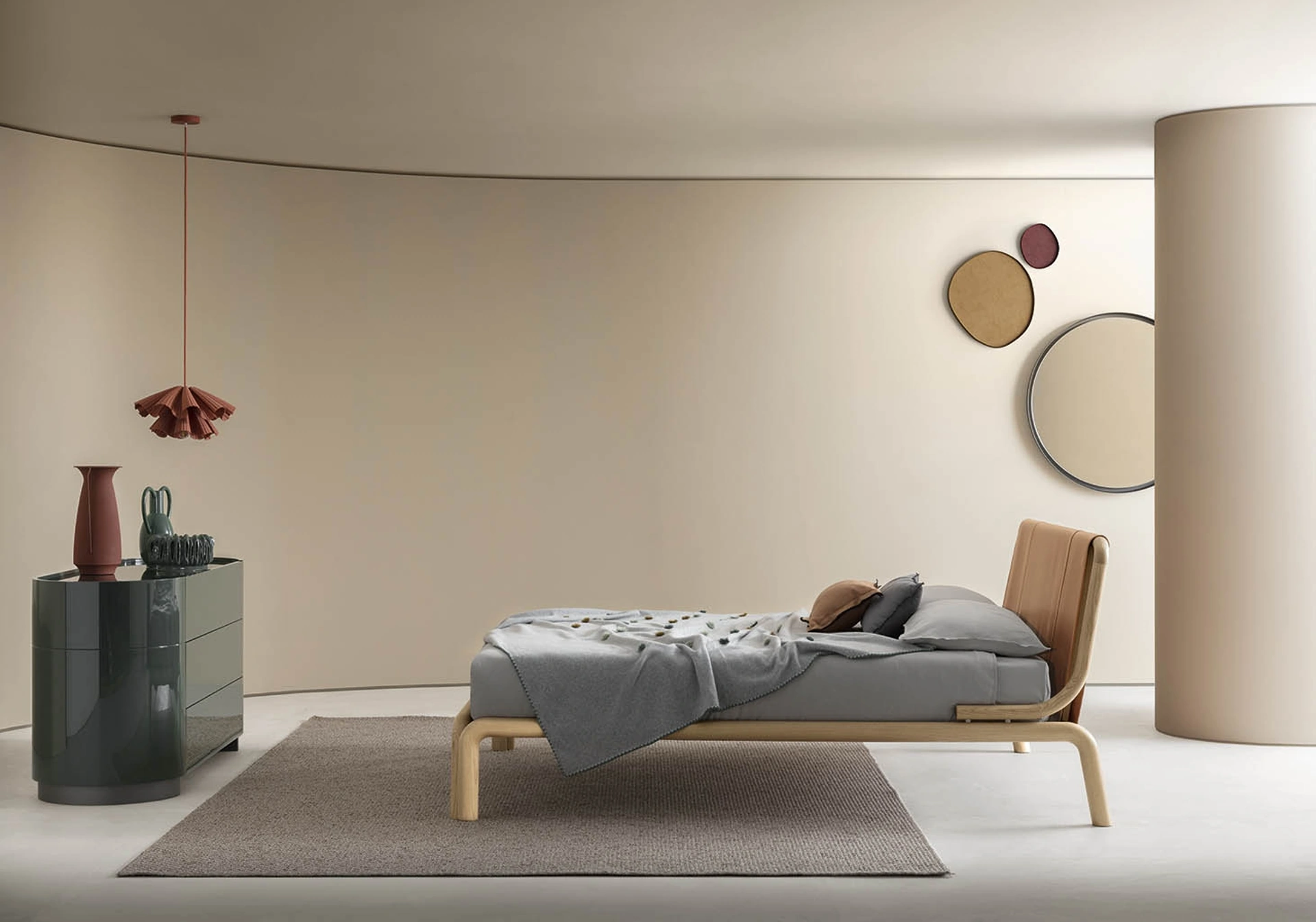 Il letto Rovì in legno, tra i modelli con testiera matrimoniali moderni di Alf Da Frè, è perfetto per assicurarti il sonno più profondo.
