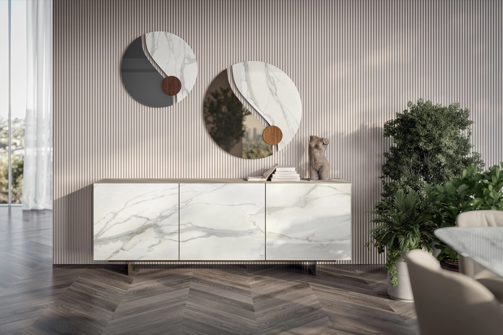 Le Madie servono per organizzare oggettistica varia, volumi e riviste, nonché a rendere bello il locale coniugando alla perfezione doti di praticità e design. La scelta delle Madie per la zona giorno o per la sala da pranzo è vincolata allo spazio a disposizione, ma coinvolge anche lo stile del locale e le proprie necessità. Per un living o una sala da pranzo di tutto rispetto, opta per questa Madia Olympia in SuperMarmo di Bontempi in gres tra le diverse composizioni moderne del brand. Se desideri una madia in gres da collocare nella tua casa, non farti scappare l'opportunità di vedere dal vivo le nostre esclusive composizioni arredative.