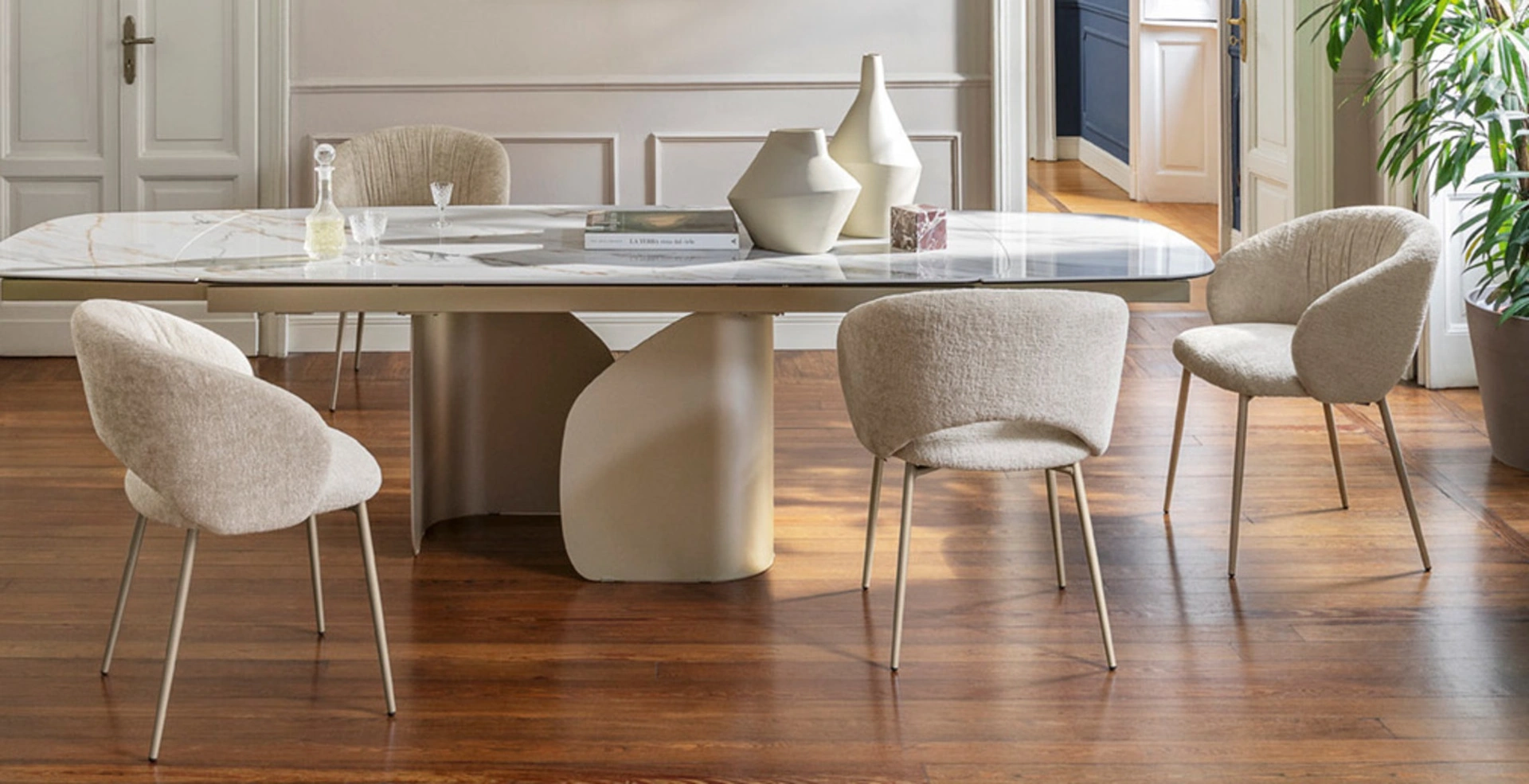 Cerchi una sedia da pranzo in tessuto? Clicca e scopri il modello Anime di Calligaris per completare i tuoi locali perfettamente.